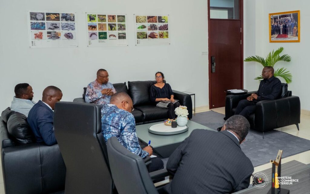 Réunion technique mercredi 1er octobre 2025 à Kinshasa entre le Ministre congolais du Commerce Extérieur, Julien Paluku Kahongya, et Poorva Karkare, analyste politique principale du Centre Européen de Gestion des Politiques de Développement (ECPDM), en présence du Directeur Général de l’ANAPEX, Mike Tambwe qui accompagnait l’Analyste auprès de la tutelle.